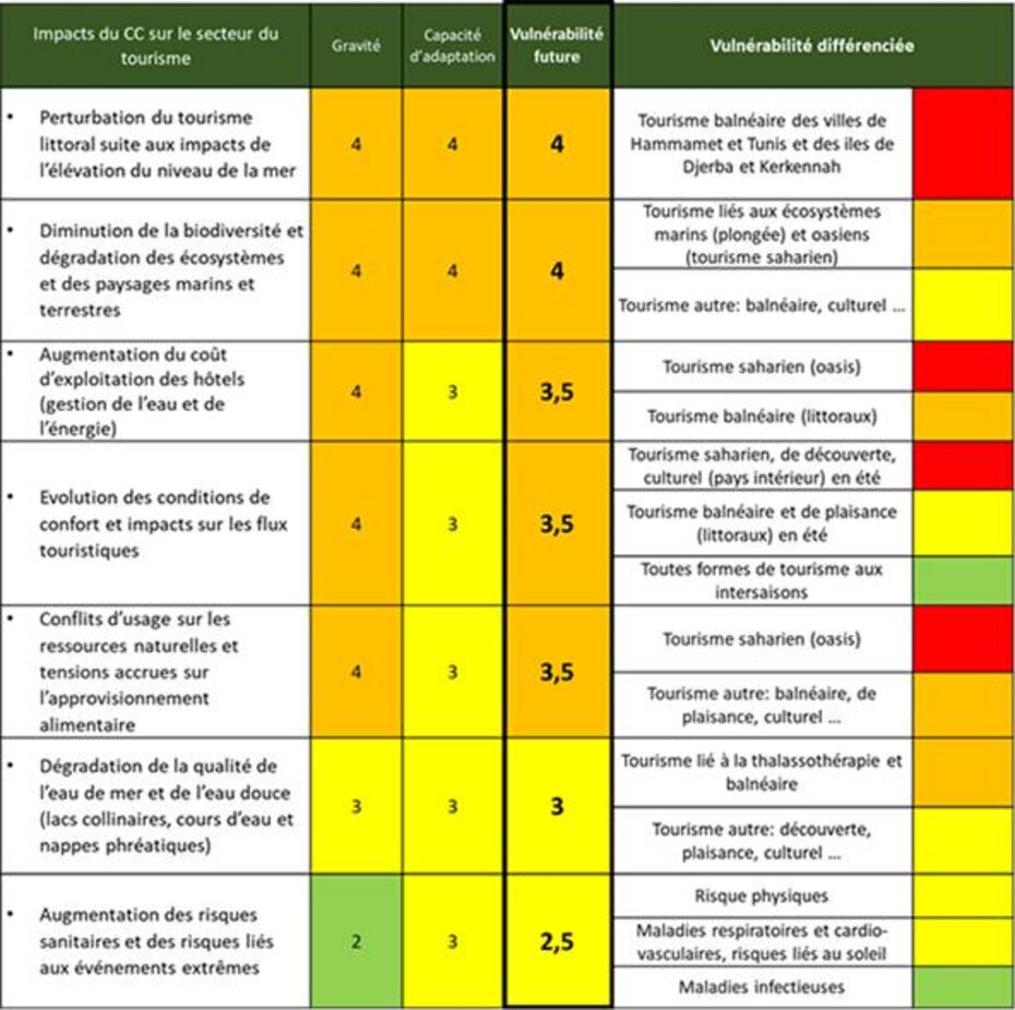 Synthèse et hiérarchisation des vulnérabilités du secteur touristique aux impacts potentiels du changement climatique